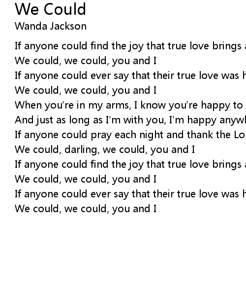 We could, darling, we could, you and I |