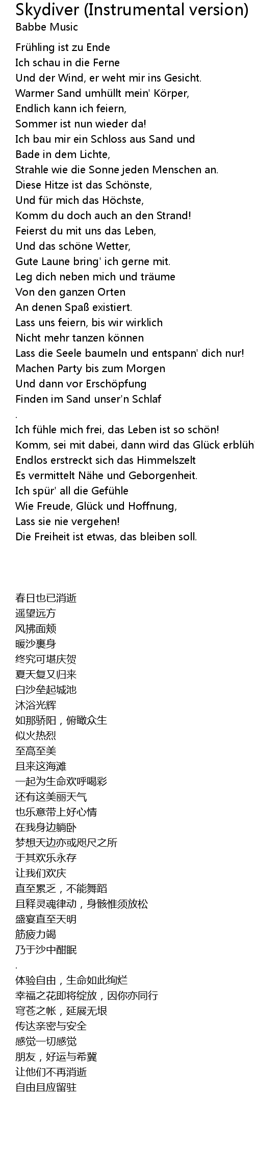 | [01:10.41] | Komm du doch auch an den Strand! |