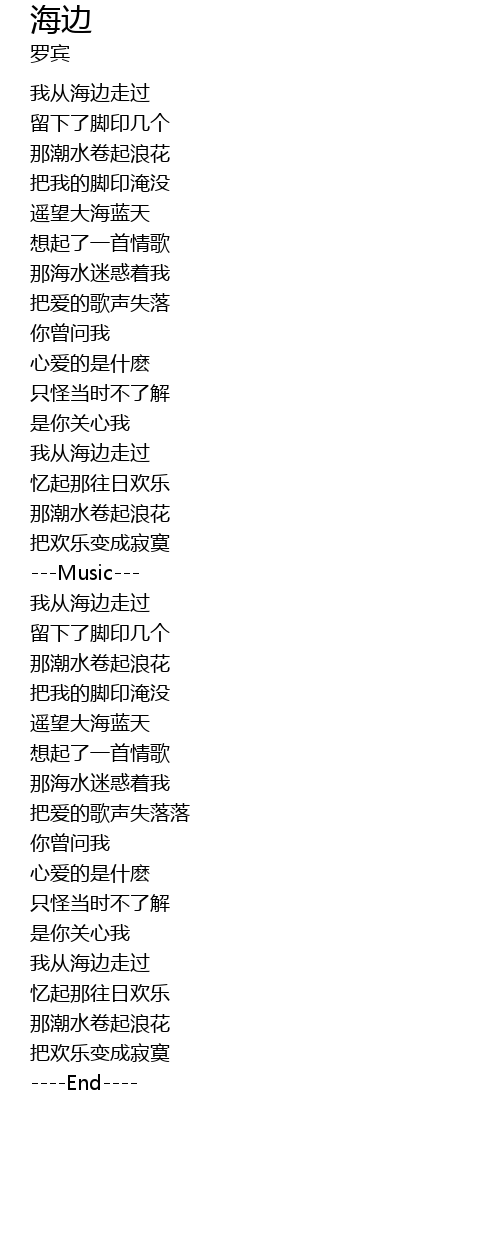 | [02:19.85] | 我从海边走过 |