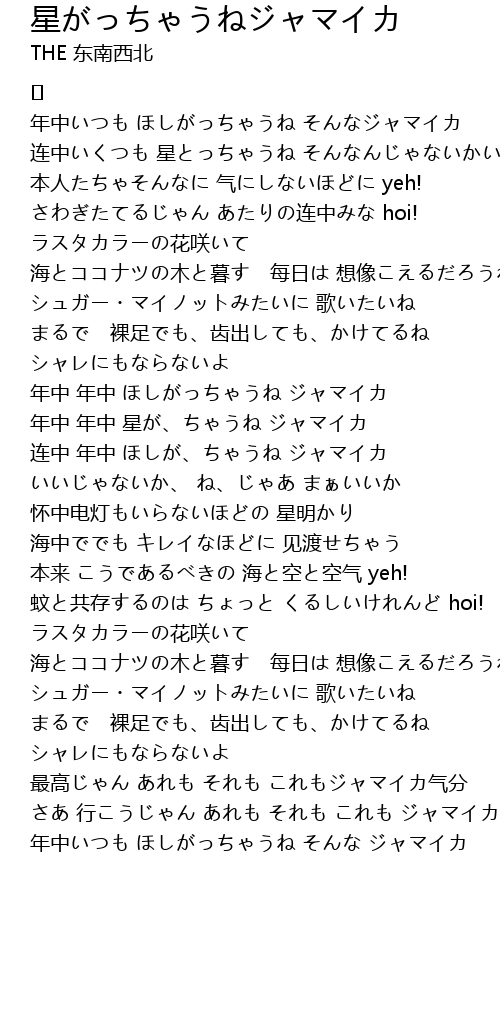 | 年中 年中 星が、ちゃうね ジャマイカ | |