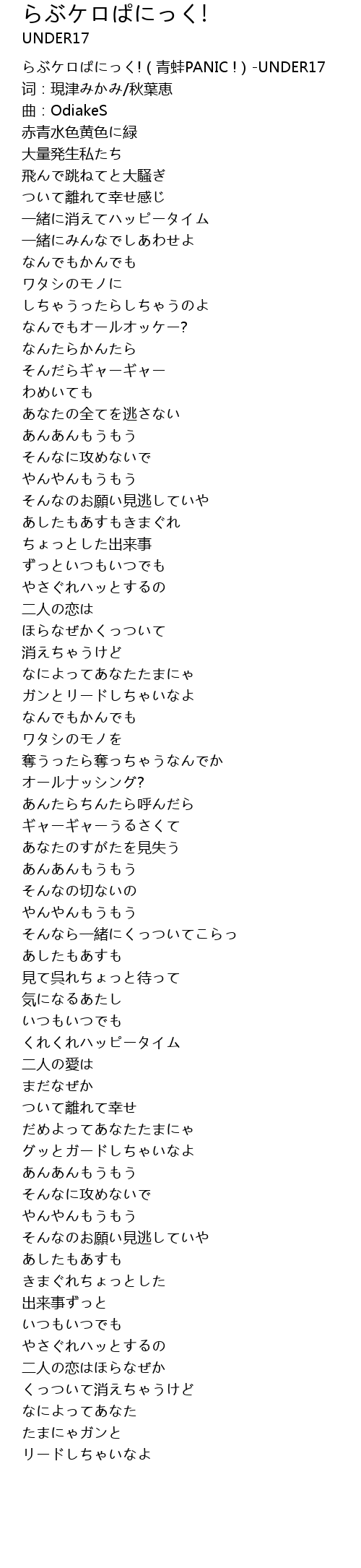| [00:00.00] | らぶケロぱにっく!(青蛙PANIC !)-UNDER17 |