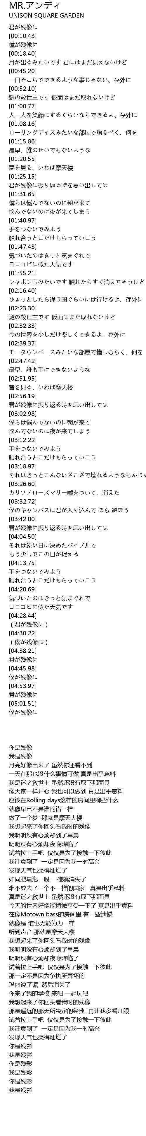| [02:56.35] | 君が残像に振り返る時を思い出しては |