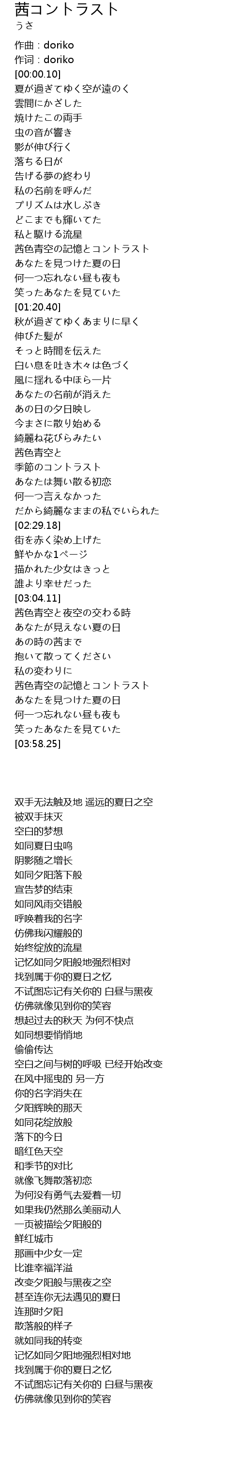 | [00:00.00] | 作曲:doriko |