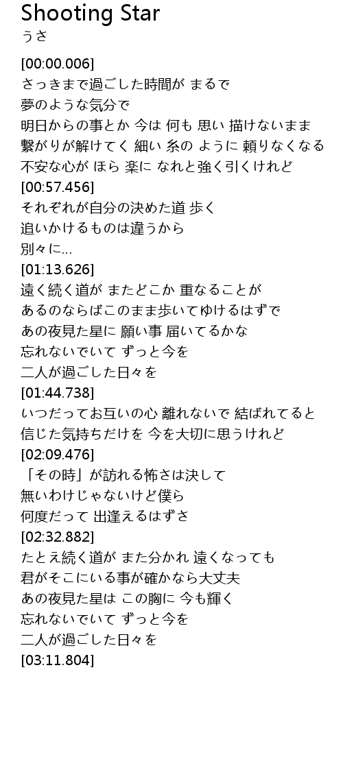 | [02:53.623] | あの夜見た星は この胸に 今も輝く |