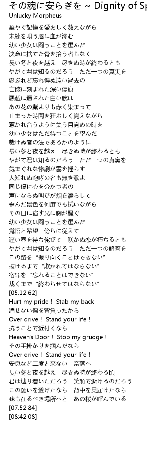 | [06:46.96] | Heaven' s Door! Stop my grudge! |