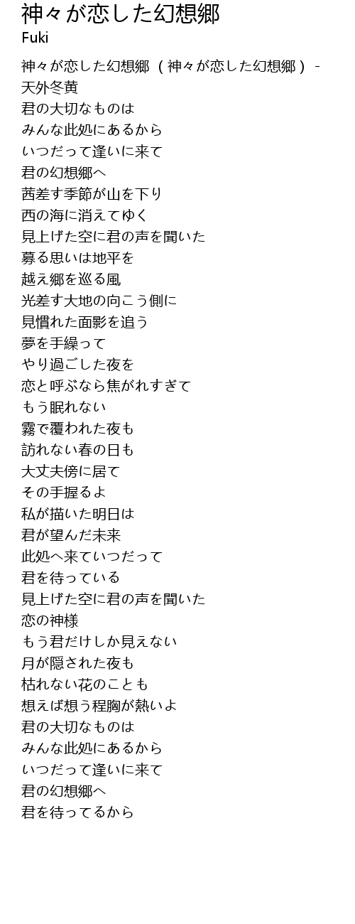 | [00:00.100] | 神々が恋した幻想郷 (神々が恋した幻想郷) - 天外冬黄 |