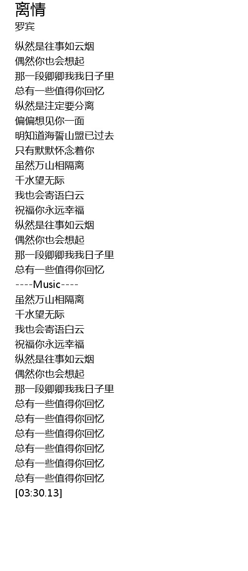 | [02:32.41] | 祝福你永远幸福 |