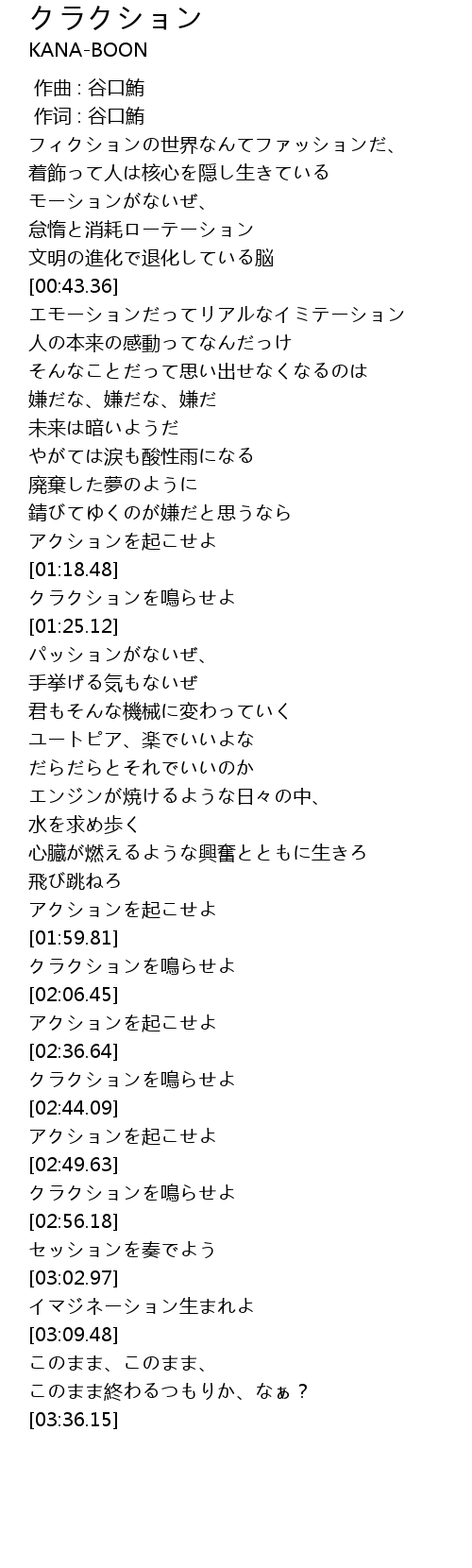 | [02:03.22] | クラクションを鳴らせよ |