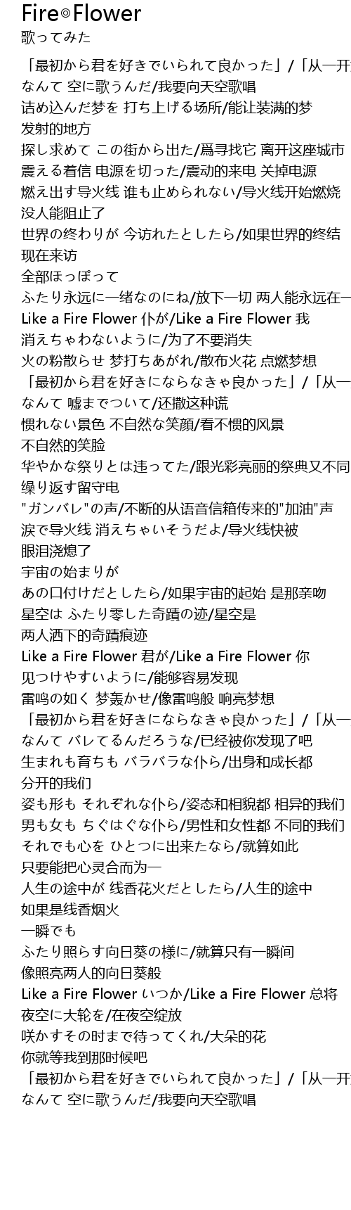 | [02:43.89] | Like a Fire Flower jun Like a Fire Flower ni |