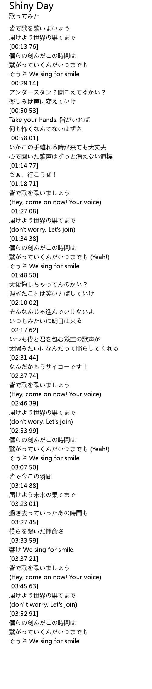 | [04:03.21] | そうさ We sing for smile. |