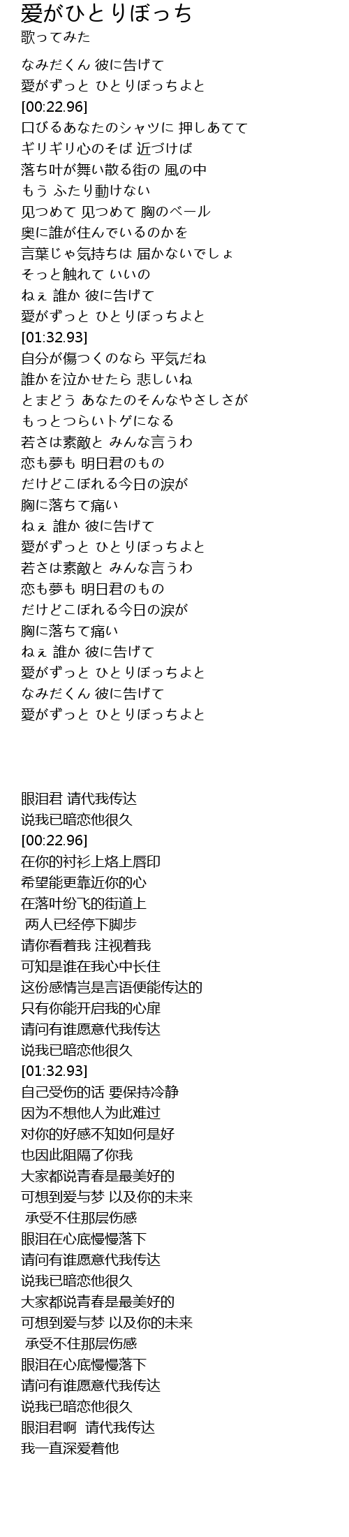 | [00:14.43] | 愛がずっと ひとりぼっちよと |