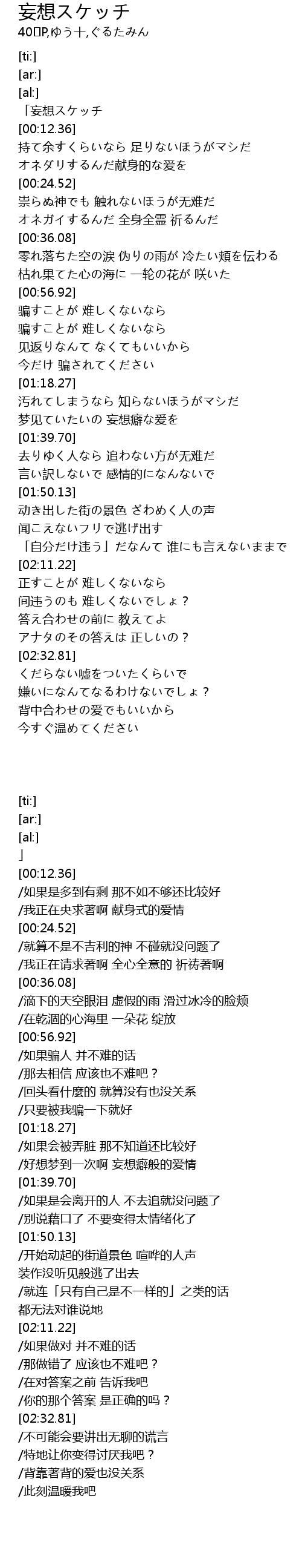 | [01:34.24] | 梦见ていたいの 妄想癖な爱を |