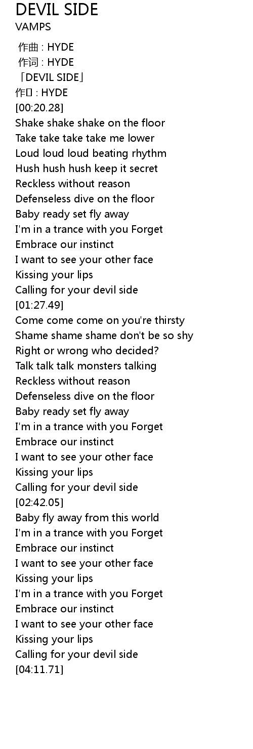 | [01:41.37] | Shame shame shame don' t be so shy |