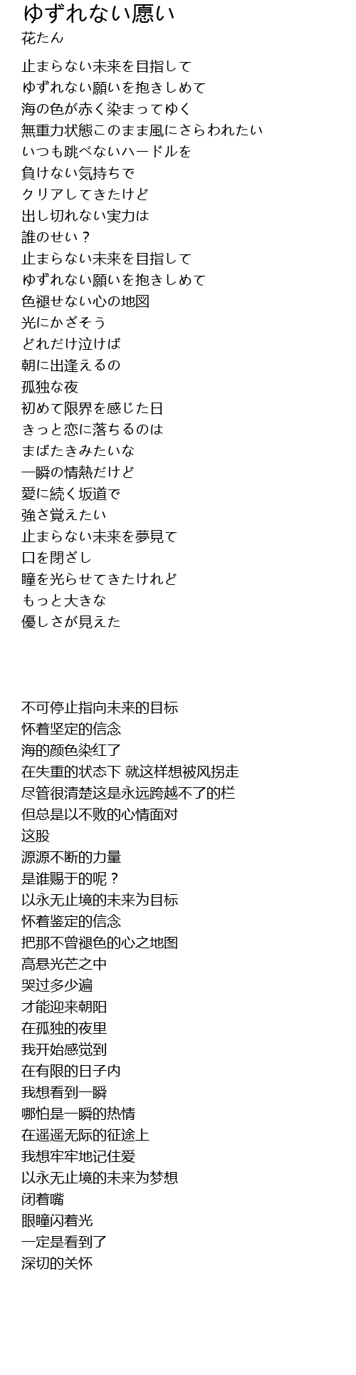 | [00:10.14] | ゆずれない願いを抱きしめて |
