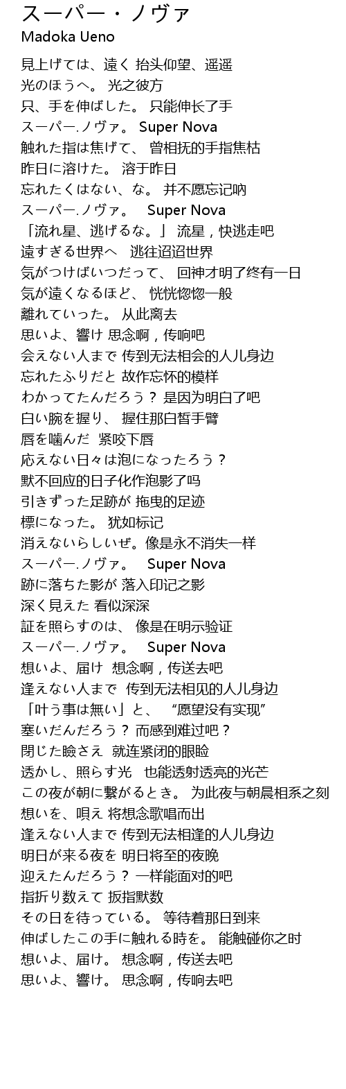 | [00:37.93] | スーパー.ノヴァ。 Super Nova |