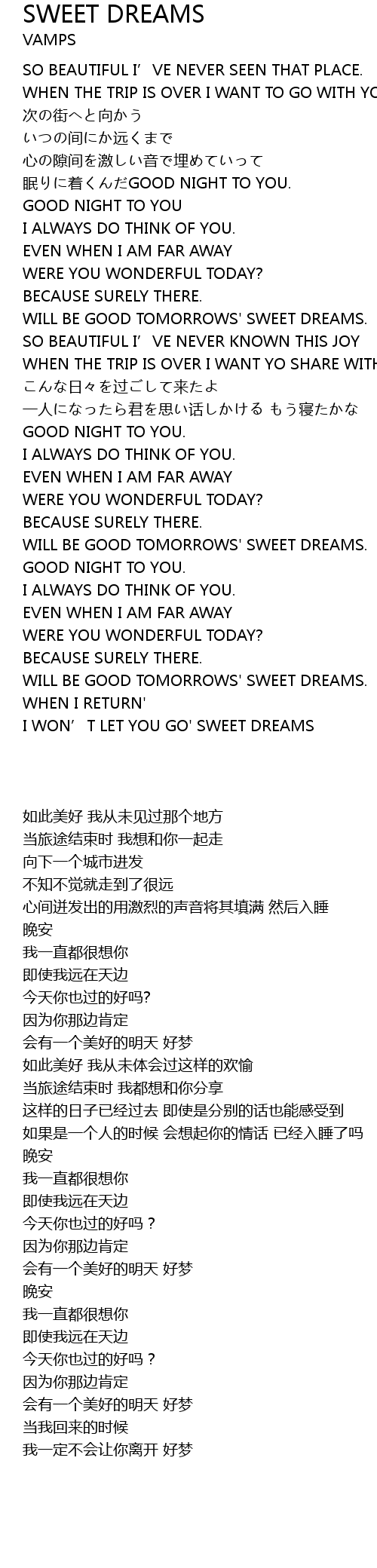 | [05:01.190] | I WON’T LET YOU GO' SWEET DREAMS |