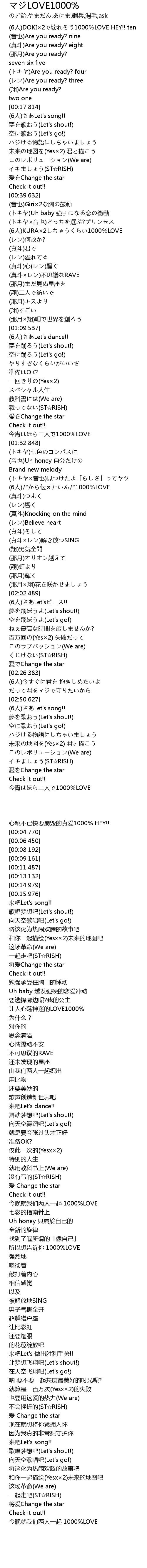 | [00:00.236] | (6人)DOKI×2で壊れそう1000%LOVE HEY!! ten |