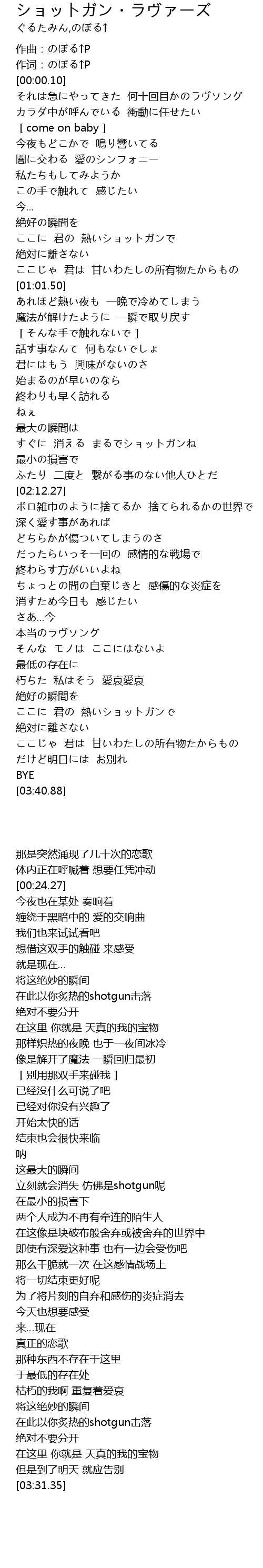 | [00:00.05] | 作词:のぼる↑P |