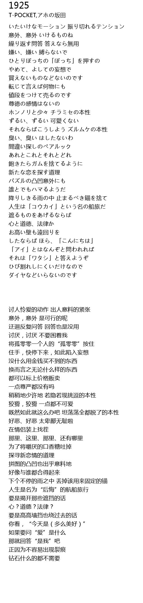| [00:16.96] | いたいけなモーション 振り切れるテンション |