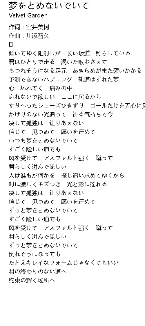 | Song | 梦をとめないでいて |