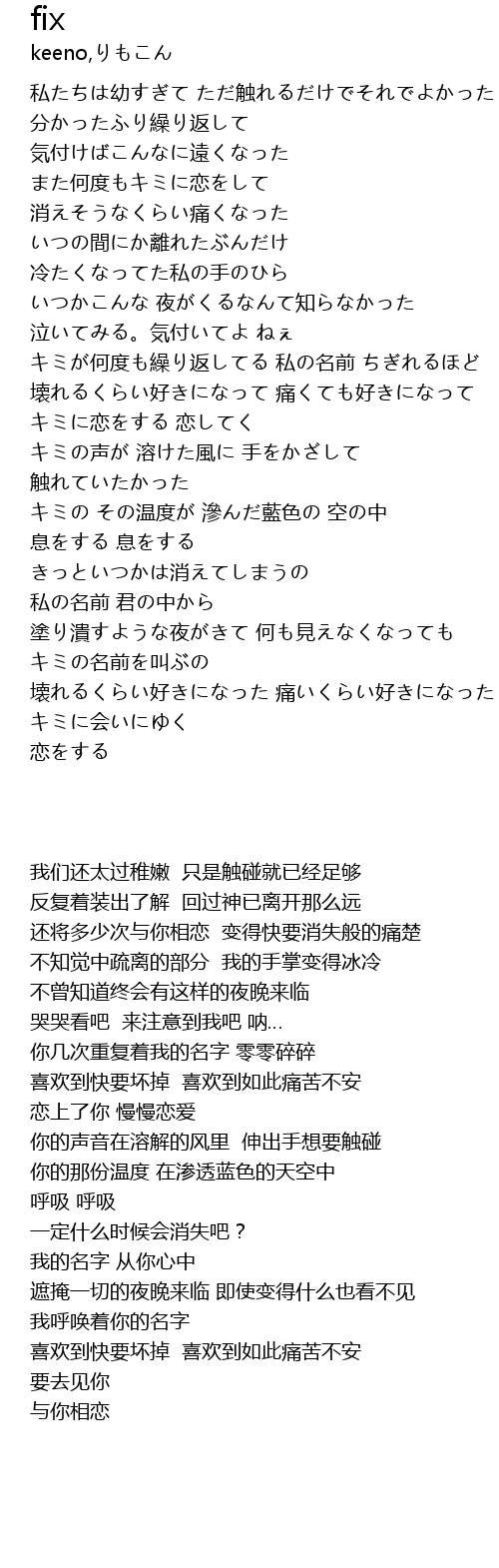 | [01:56.65] | 壊れるくらい好きになって 痛くても好きになって |