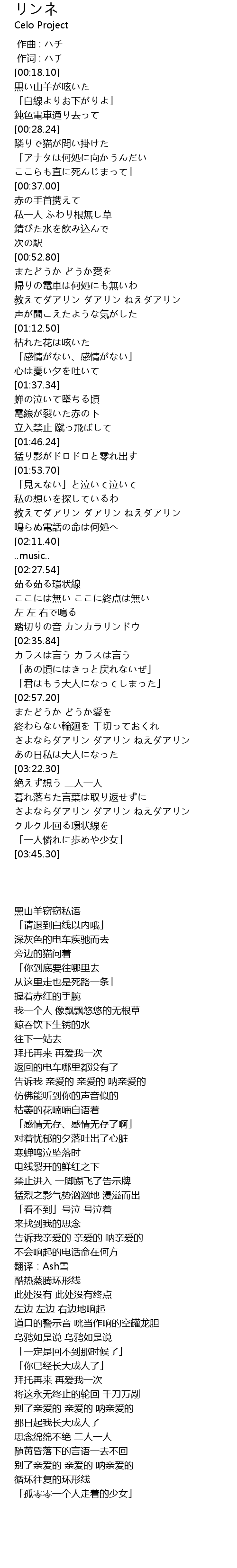| [02:33.70] | 踏切りの音 カンカラリンドウ |