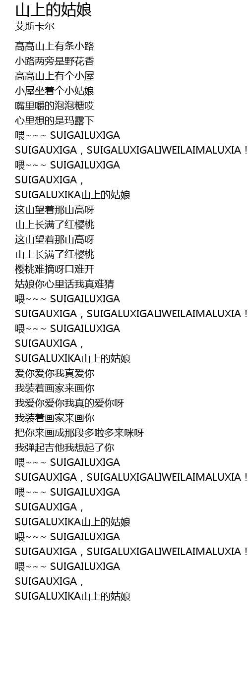 | [02:49.83] | SUIGALUXIKA山上的姑娘 |