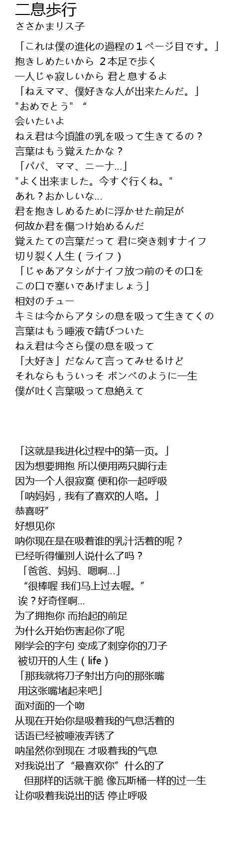 | Song | 二息歩行 |
