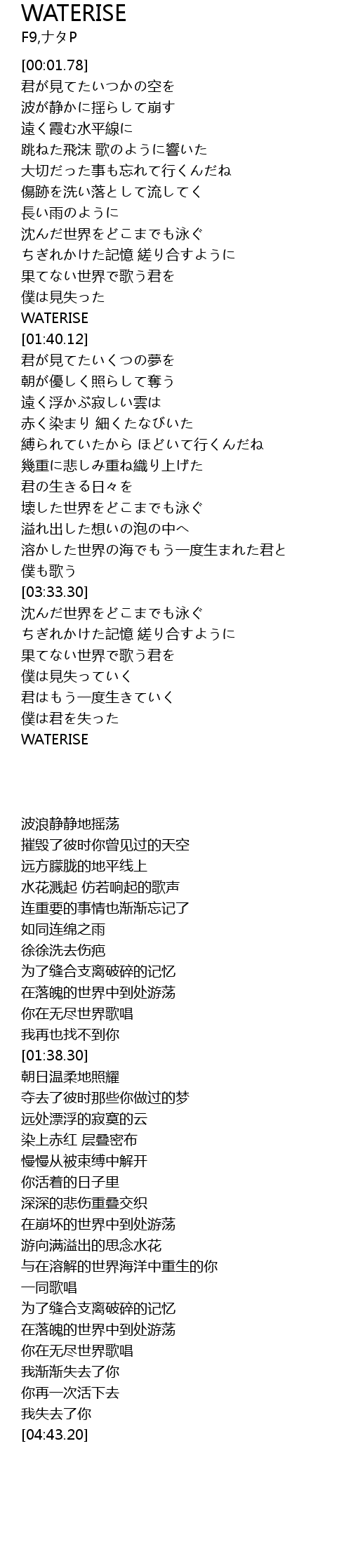| [03:06.67] | 壊した世界をどこまでも泳ぐ |