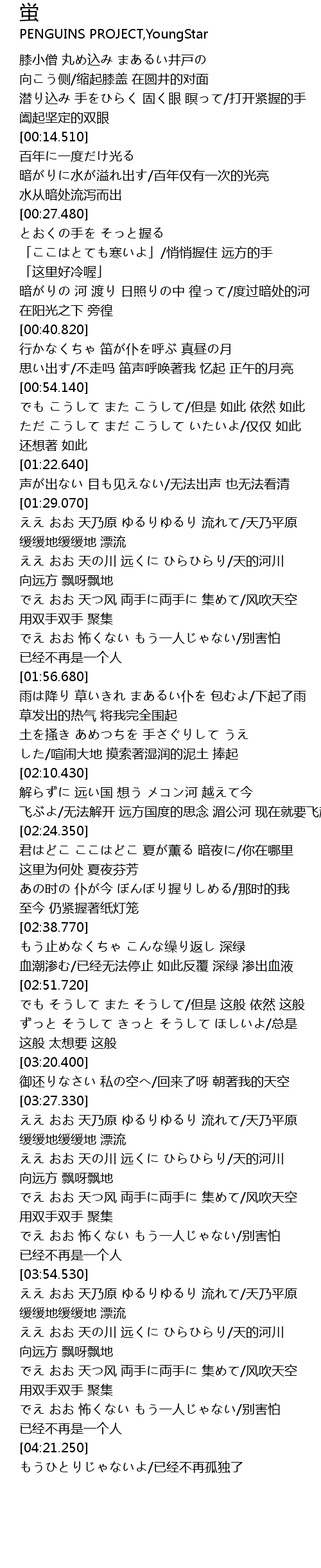 | [04:22.570] | もうひとりじゃないよ/已经不再孤独了 |