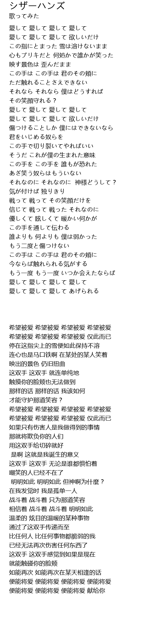 愛して 愛して 愛して あげられる |