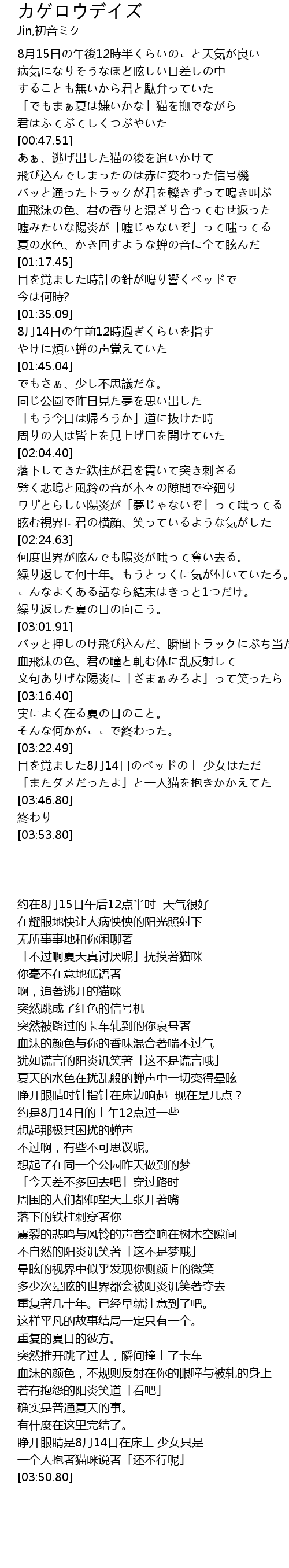 カゲロウデイズ  Lyrics