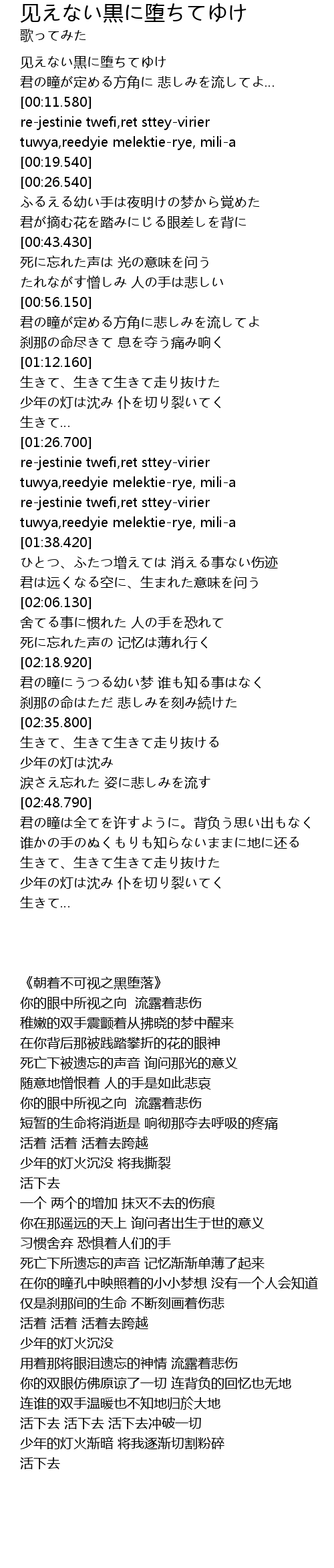 | [00:00.000] | 见えない黒に堕ちてゆけ |