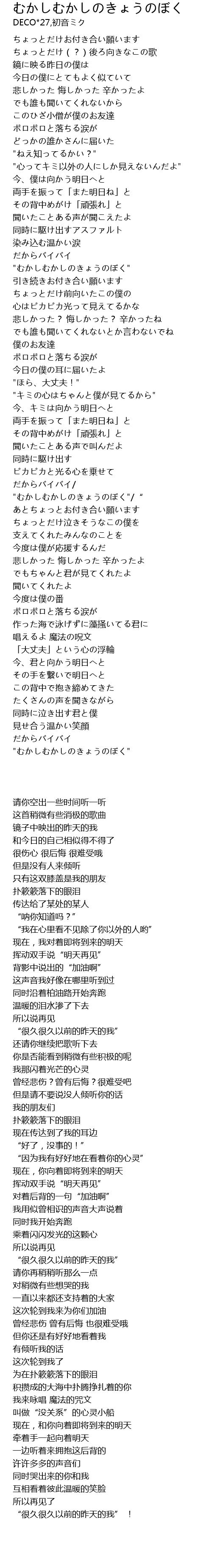 | [01:39.670] | "むかしむかしのきょうのぼく" |