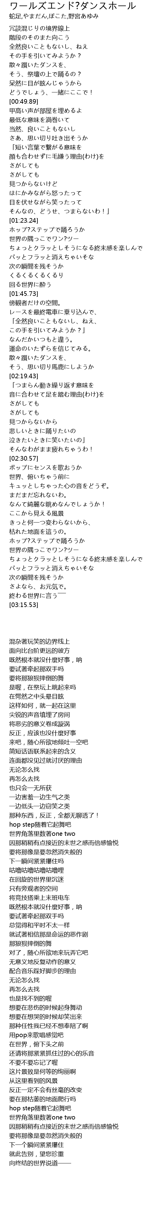 | [02:55.75] | 世界の隅っこでワン?ツー |