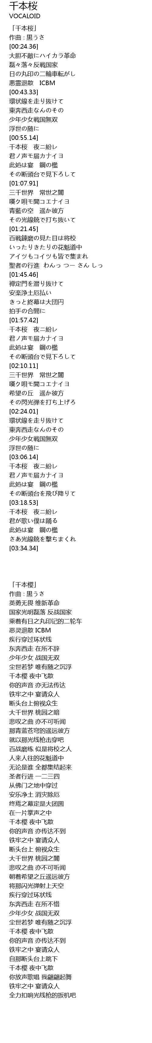 | [03:06.76] | 千本桜 夜ニ紛レ |