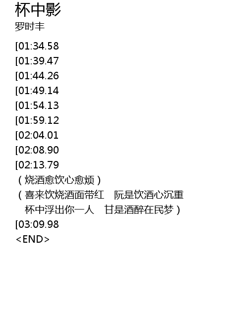 | [00:40.68][01:39.47] | 杯中浮出你一人 |