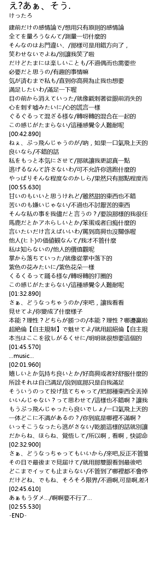 | [01:35.750] | 本能?理性?どちらが勝つの/本能?理性?哪邊贏啦 |
