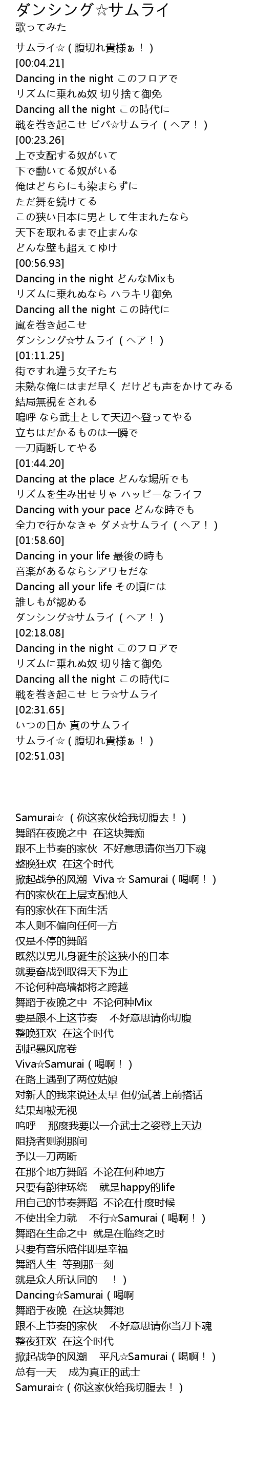 | [02:16.39] | ダンシング☆サムライ(ヘア!) |