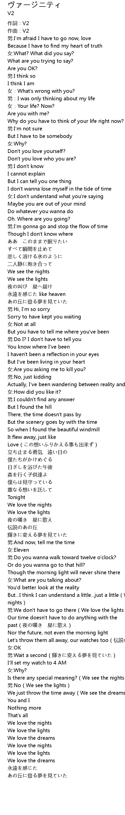 | [00:05.64] | 作詞:V2 |