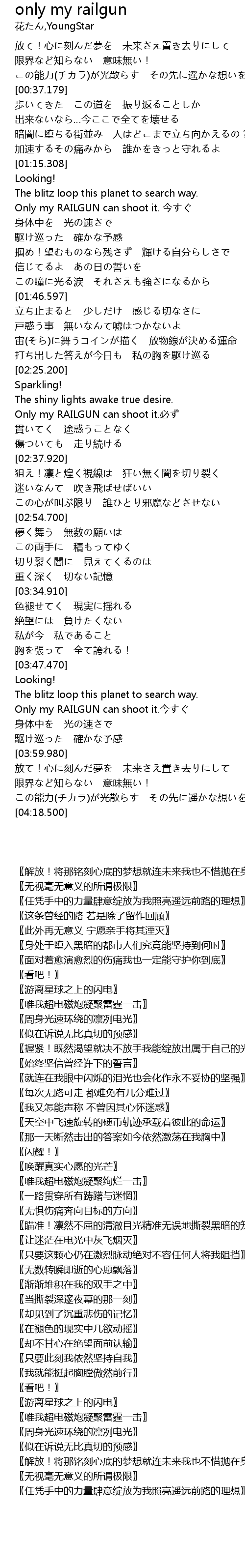 | [02:29.0] | Only my RAILGUN can shoot it.必ず |