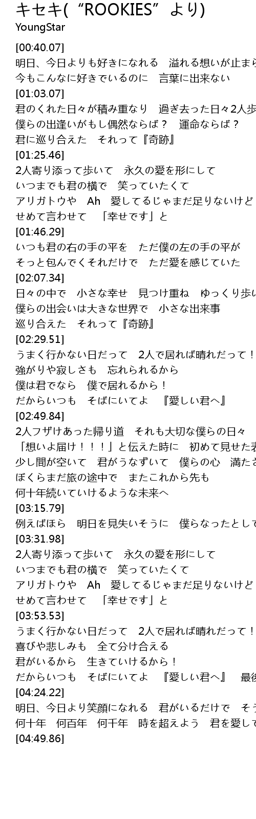 | [01:21.91] | 君に巡り合えた それって『奇跡』 |