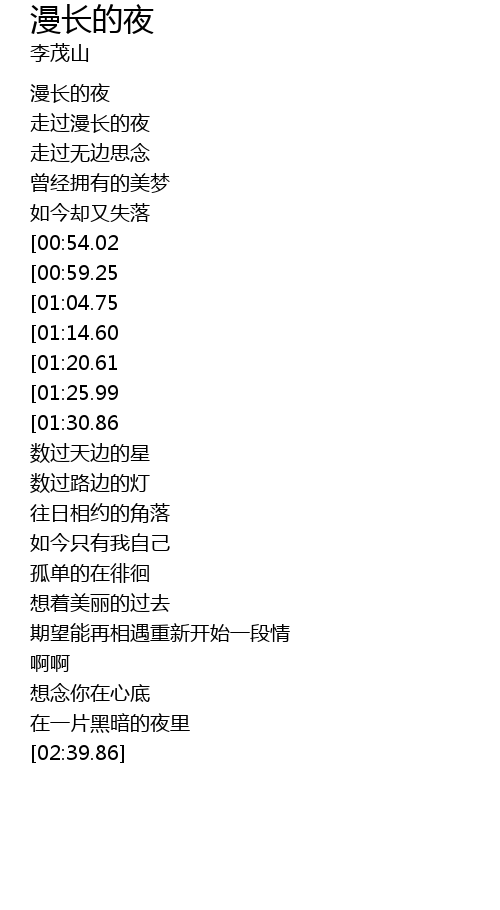 | [03:33.80][01:25.99] | 在一片黑暗的夜里 |