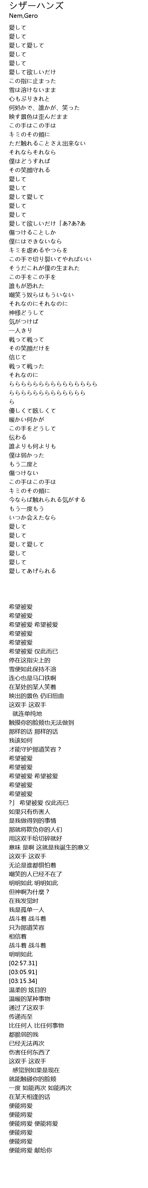 | [03:55.73] | 愛して愛して |