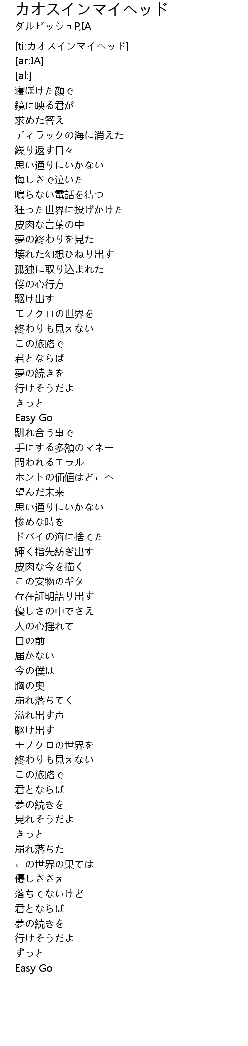 | [00:48.65] | 壊れた幻想ひねり出す |