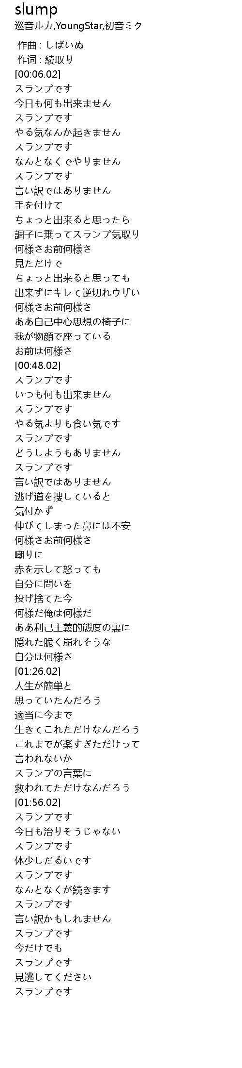 | [00:29.13] | 調子に乗ってスランプ気取り |