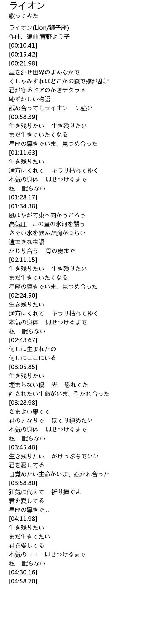 | [00:00.61] | ライオン(Lion/狮子座) |