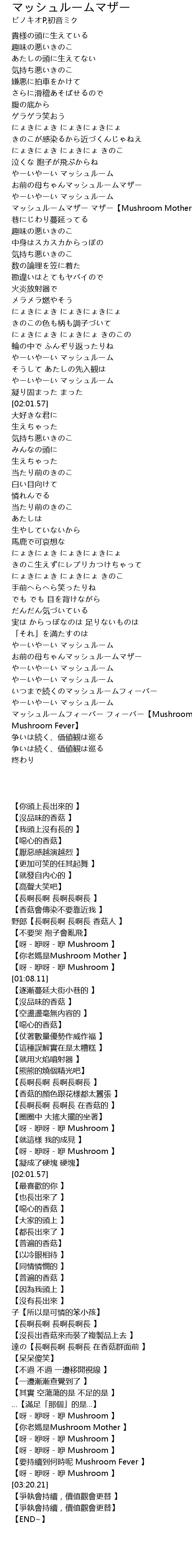 [03:01.52] やーいやーい マッシュルーム