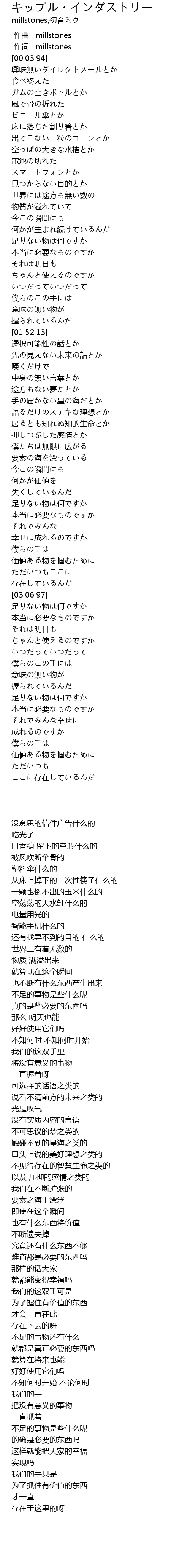 作词 : millstones |