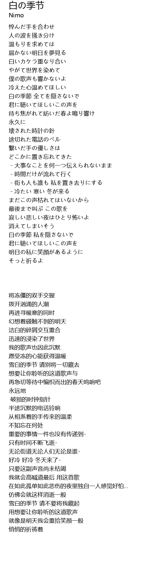 | [01:20.300] | 白の季節 全てを隠さないで |